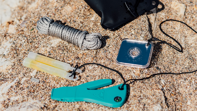 un outil multifonction “Wiscue” : coupe-ligne, boussole et sifflet